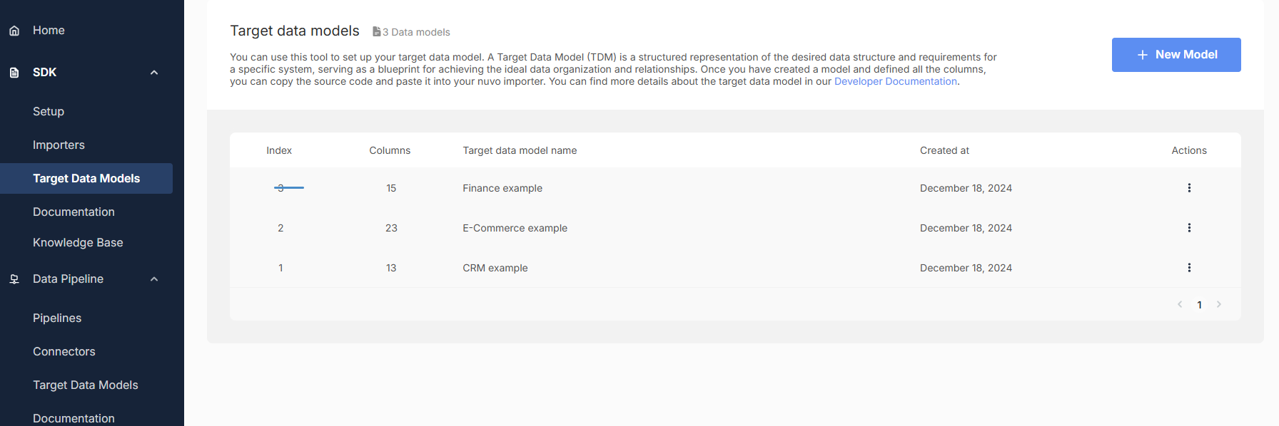 Set up a target data model for the target table of your MySQL Database. Click on New Model.